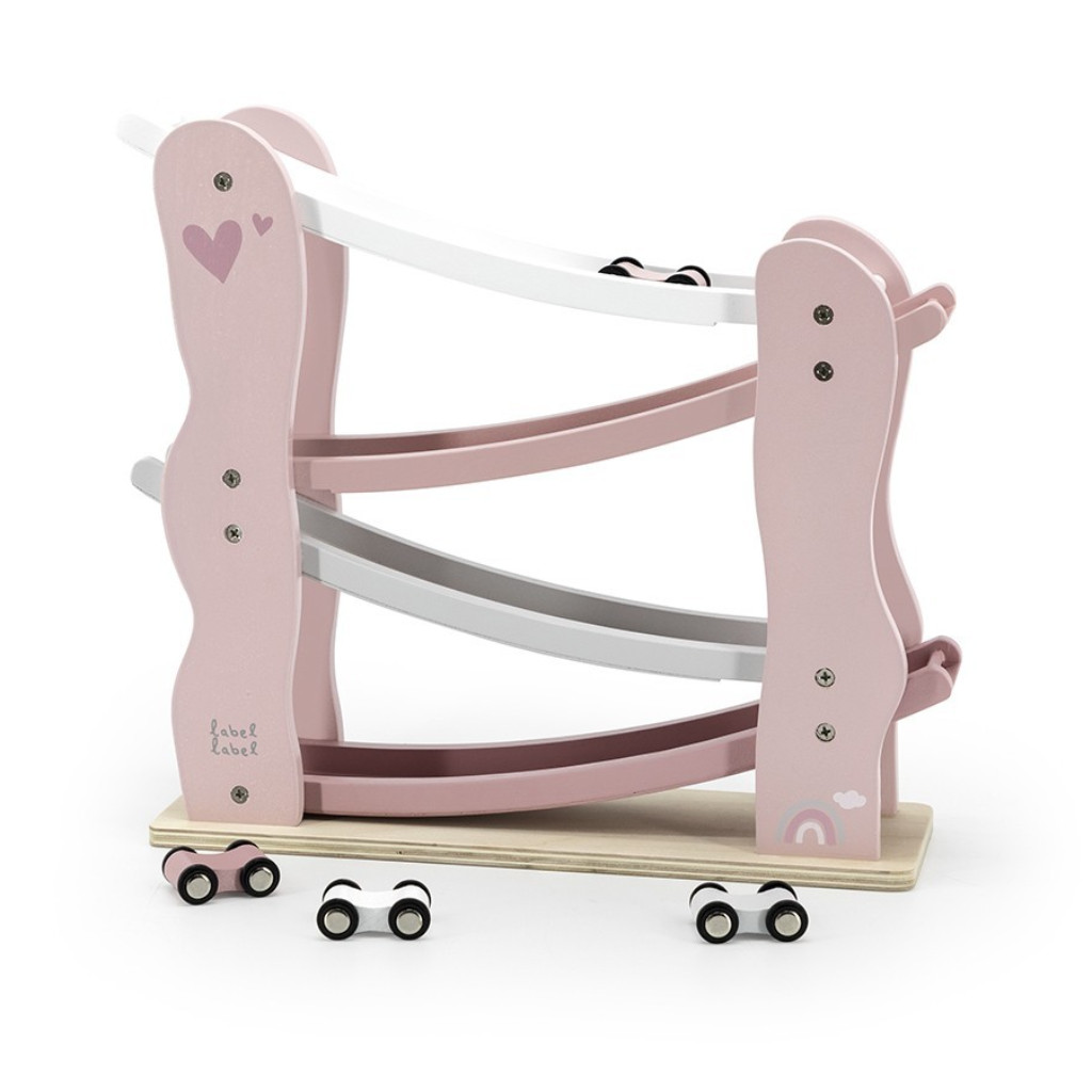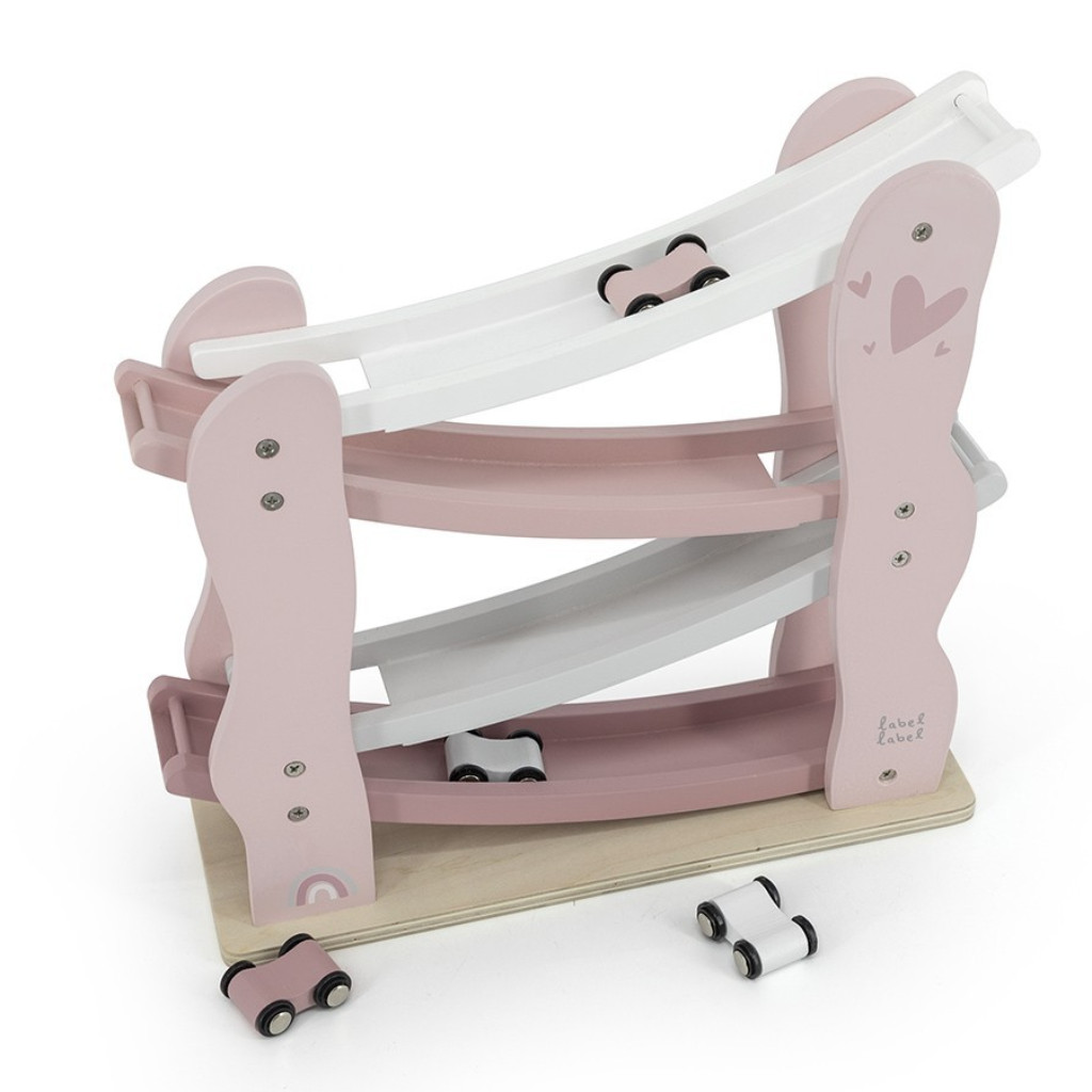 Le toboggan est livré avec 4 voitures dans des couleurs assorties et assure une activité non-stop pour votre tout-petit. Placez la voiture en haut de la glissière et regardez-la descendre et tourner! Ou organisez un mini-concours ensemble ... Plaisir absolu assuré tout en stimulant la motricité, la coordination et le raisonnement logique. Conseil : Avec un set de blocs de Label Label, vous rendez la course très amusante en ajoutant une piste de course, des ponts, des obstacles ....
