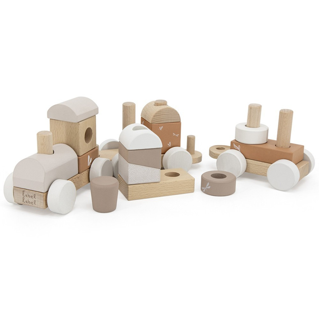 Ce beau train d’empilage en bois vous fera découvrir la nouvelle collection Nougat de Label Label! Comme tous les autres jouets en bois, ce train est fait de bois de hêtre certifié FSC de qualité et les accents nougat ont été appliqués à l’aide de peinture à base d’eau non nocive pour les enfants. Les différents blocs peuvent être utilisés sans les chariots pour empiler, construire...