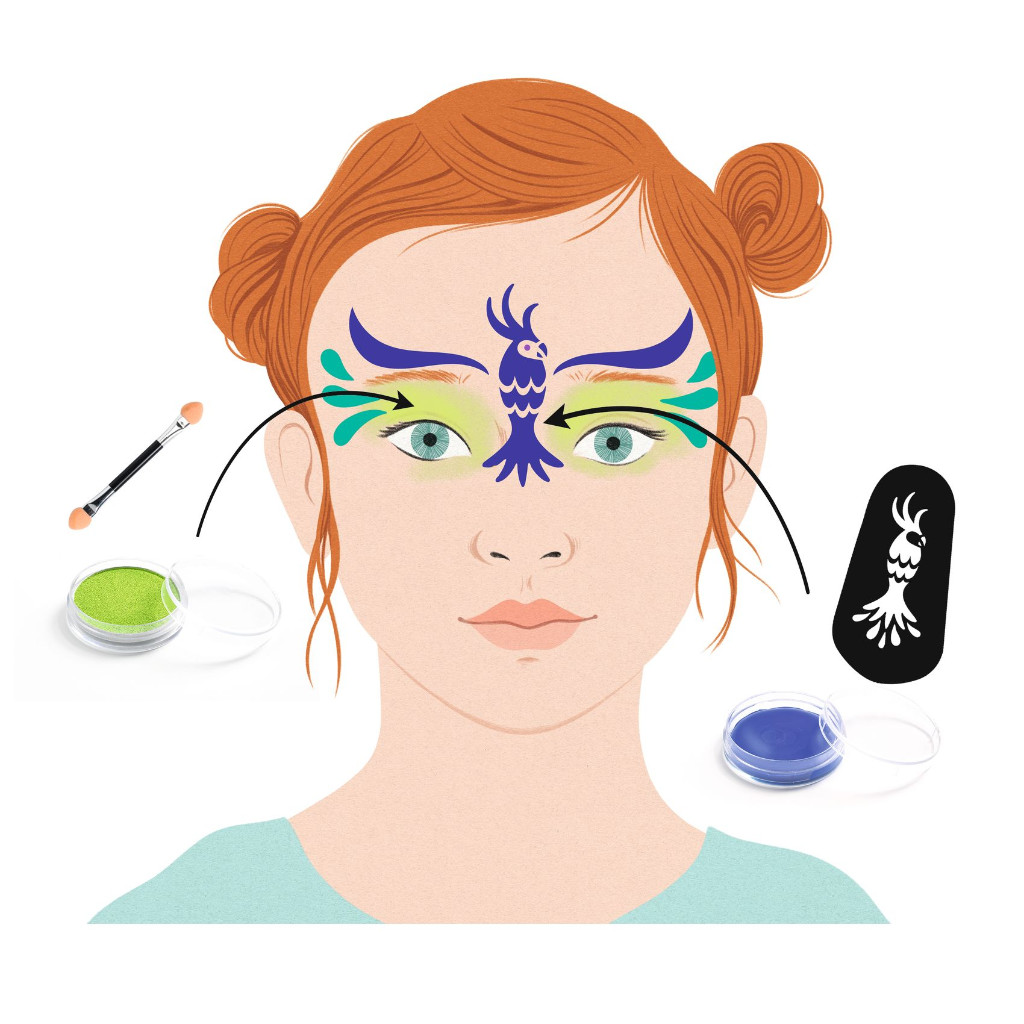 Perroquet aux plumes éclatantes, papillon coloré ou joli visage fleuri… Avec ce kit de maquillage créatif, les enfants se transforment en personnages hauts en couleur en quelques gestes ! Et grâce aux modèles supplémentaires, l’imagination n’a plus de limites : encore plus d’idées pour s’amuser et se raconter mille histoires !