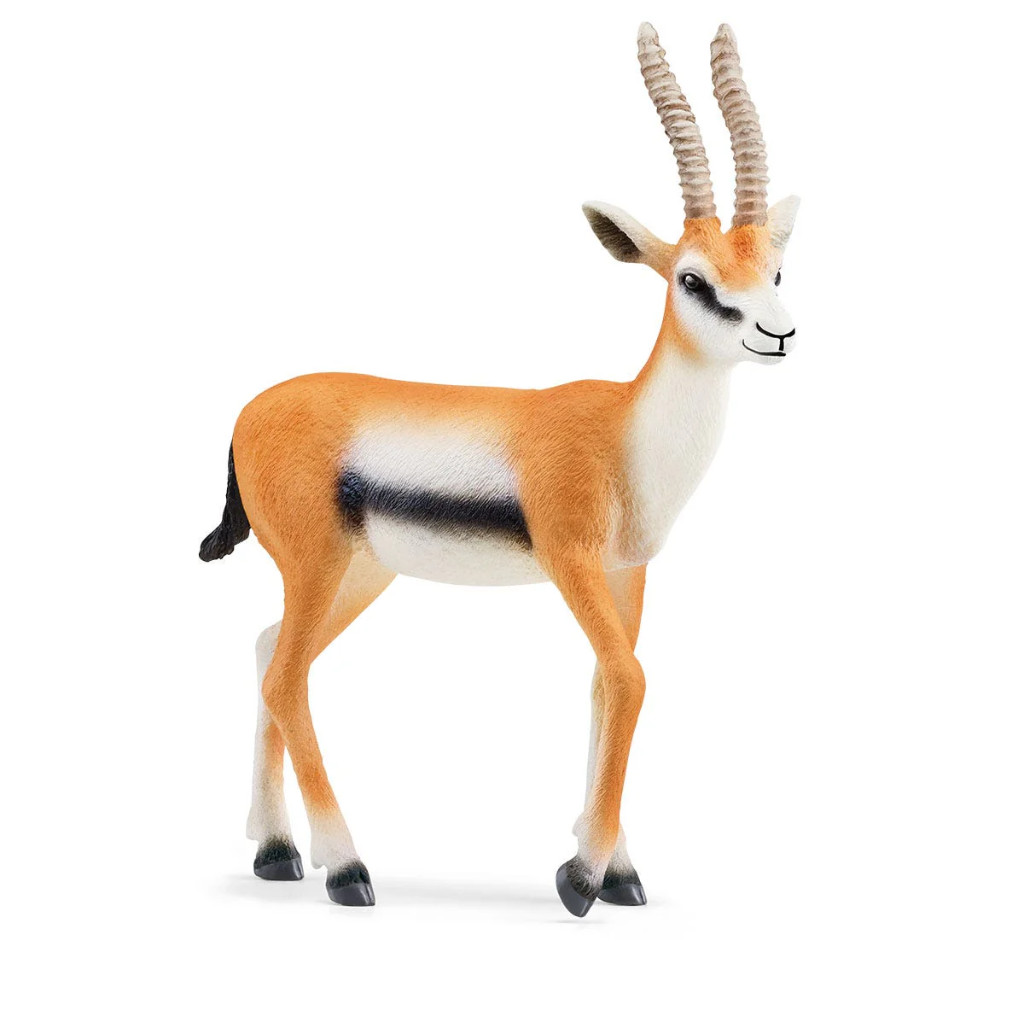N’est-ce pas un bruissement dans les buissons ? La jolie Gazelle de Thomson observe attentivement son environnement. Un guépard s’y est peut-être caché. Elle n’a pas envie de lui servir de petit-déjeuner ! Malheureusement, ses longues cornes recourbées ne lui sont pas d'un grand secours face au guépard. Elle préfère s’enfuir et bifurquer rapidement. Sauf si elle décide de rester là où l’herbe est basse pour tout observer. Peut-être qu’elle serait plus en sécurité sur le tapis de ta chambre ?