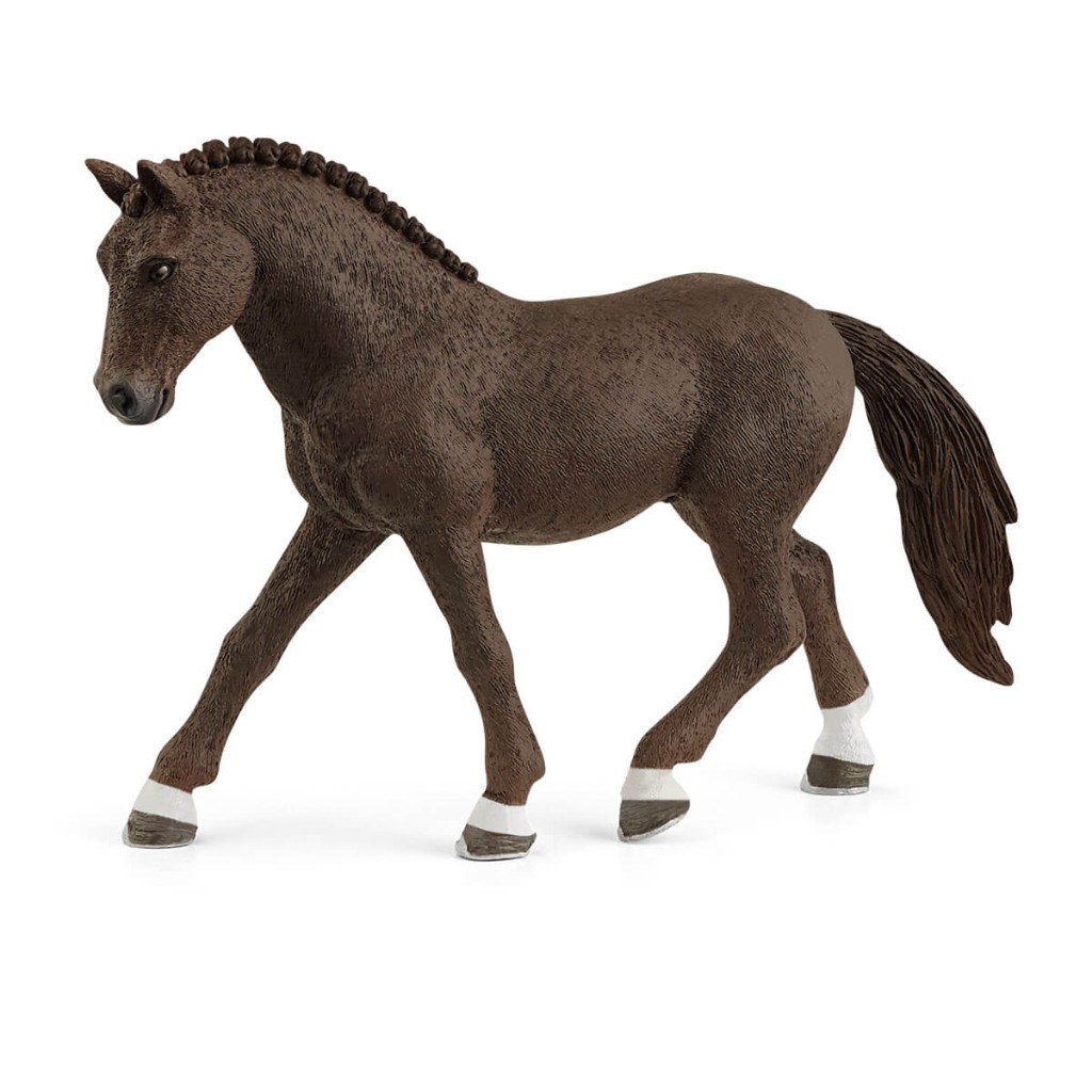 Le poney de selle allemand hongre du HORSE CLUB schleich® possède une magnifique crinière tressée. Malgré sa petite taille au garrot, il ressemble à un grand cheval. C’est ce qui caractérise cette race de poneys. Ces animaux ont des membres longs et effilés et une carrure élégante. Ainsi, ils se distinguent des poneys ordinaires, dont les membres sont plutôt courts et épais et le corps trapu. Le poney de selle allemand est également qualifié de sang chaud miniature.