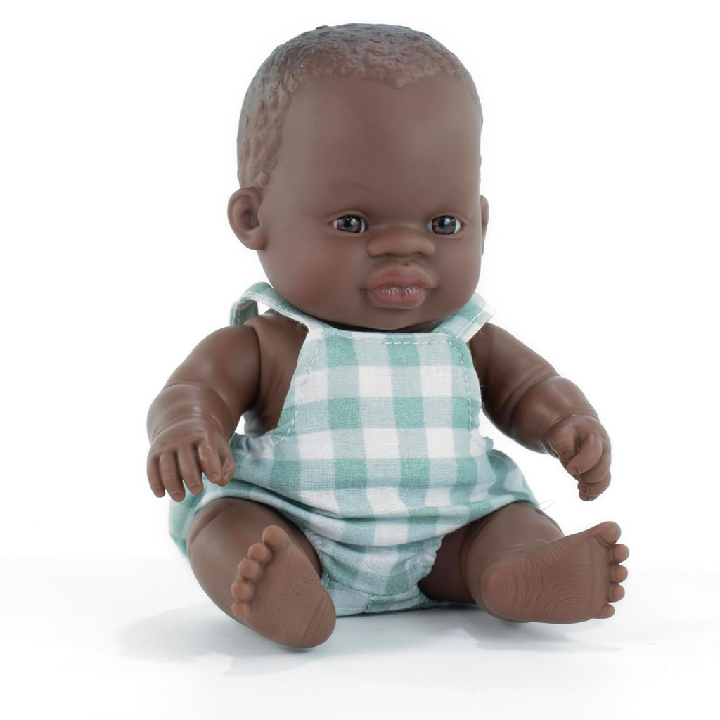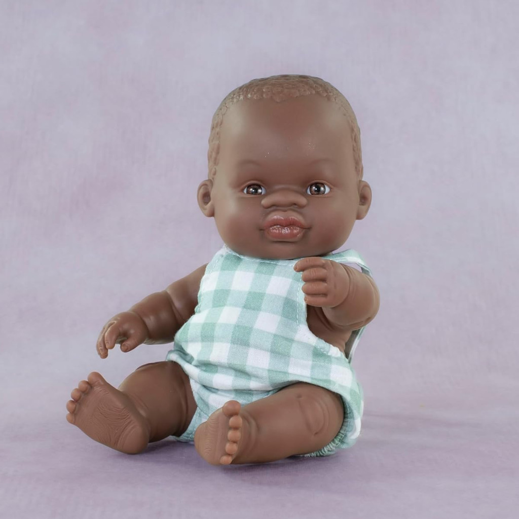 Elle est livrée avec une tenue exclusive conçue spécialement pour elle. Vous trouverez également un sac kraft, parfait pour toutes les occasions de jeu ! Fabriquée à la main en Espagne, la poupée bébé asiatique est fabriquée en vinyle souple de haute qualité et dégage un délicat parfum de vanille. Cela garantit une expérience de jeu sûre et agréable pour les enfants. La poupée bébé africain Miniland de 21 cm est non seulement un charmant compagnon de jeu, mais aussi une célébration vivante de la diversité et de l'amitié. Idéale à offrir, elle offre une expérience de jeu enrichissante et éducative. Donnez du sens au jeu avec cette adorable poupée !