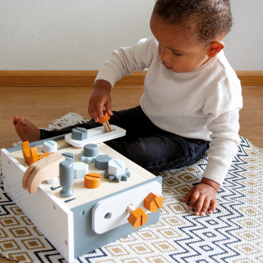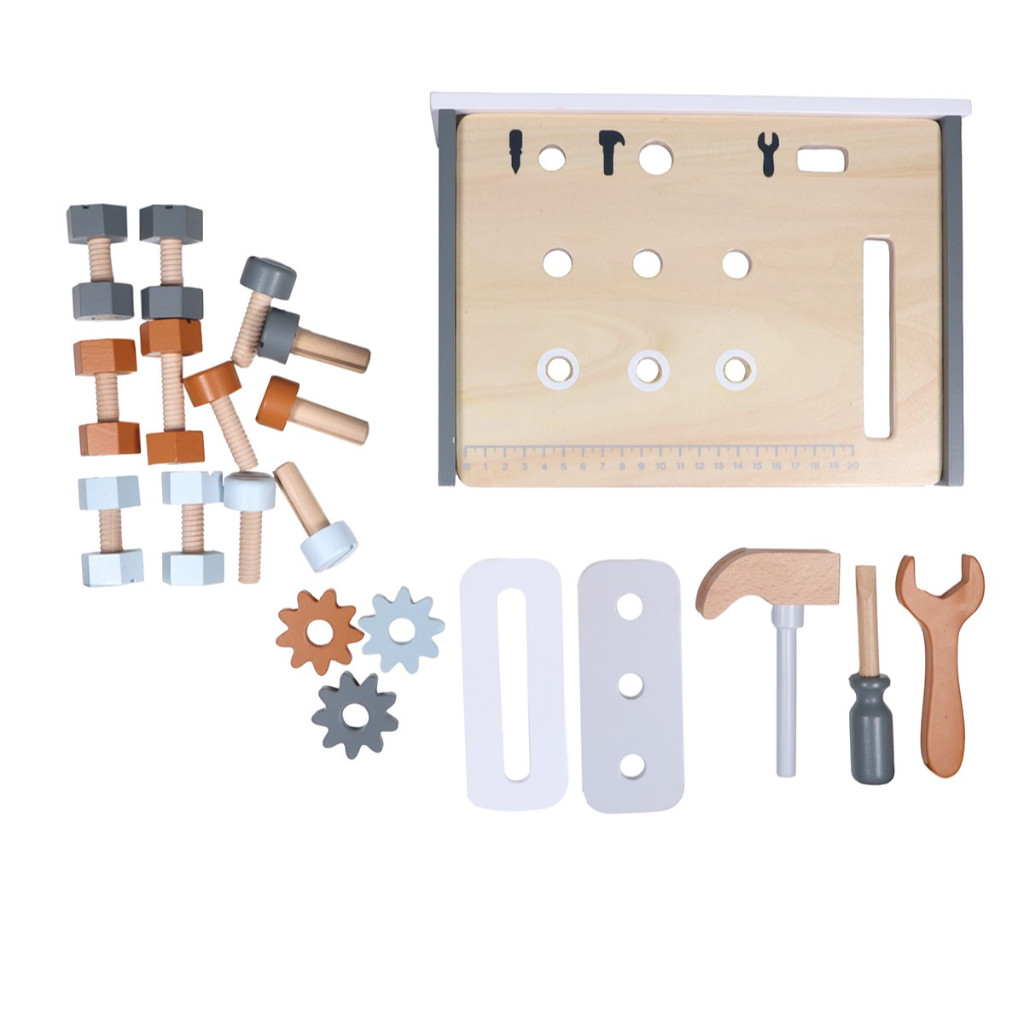 Comprend : 6 boulons, 6 écrous, 3 engrenages, 2 formes d’assemblage, marteau, tournevis et clé.