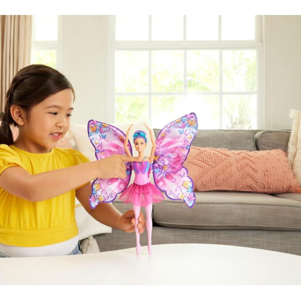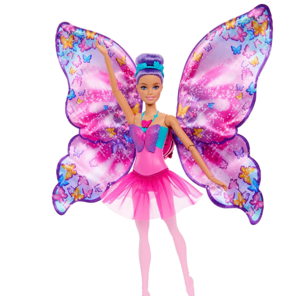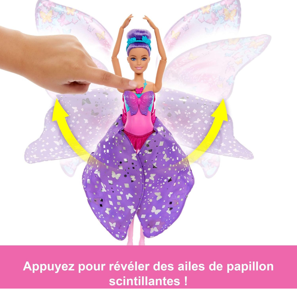 Les enfants vont adorer inventer des histoires fantastiques de haut vol avec cette poupée Barbie De Danseuse à Papillon et sa transformation 2 en 1 !