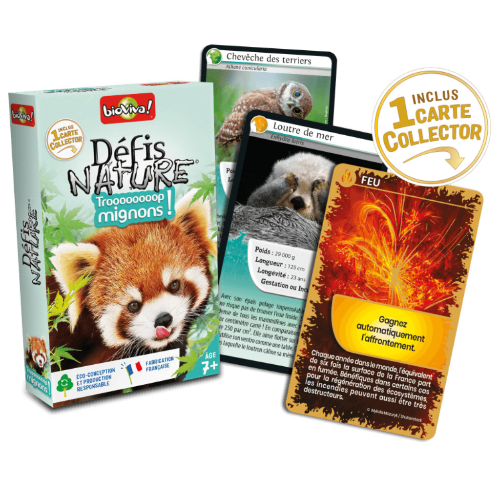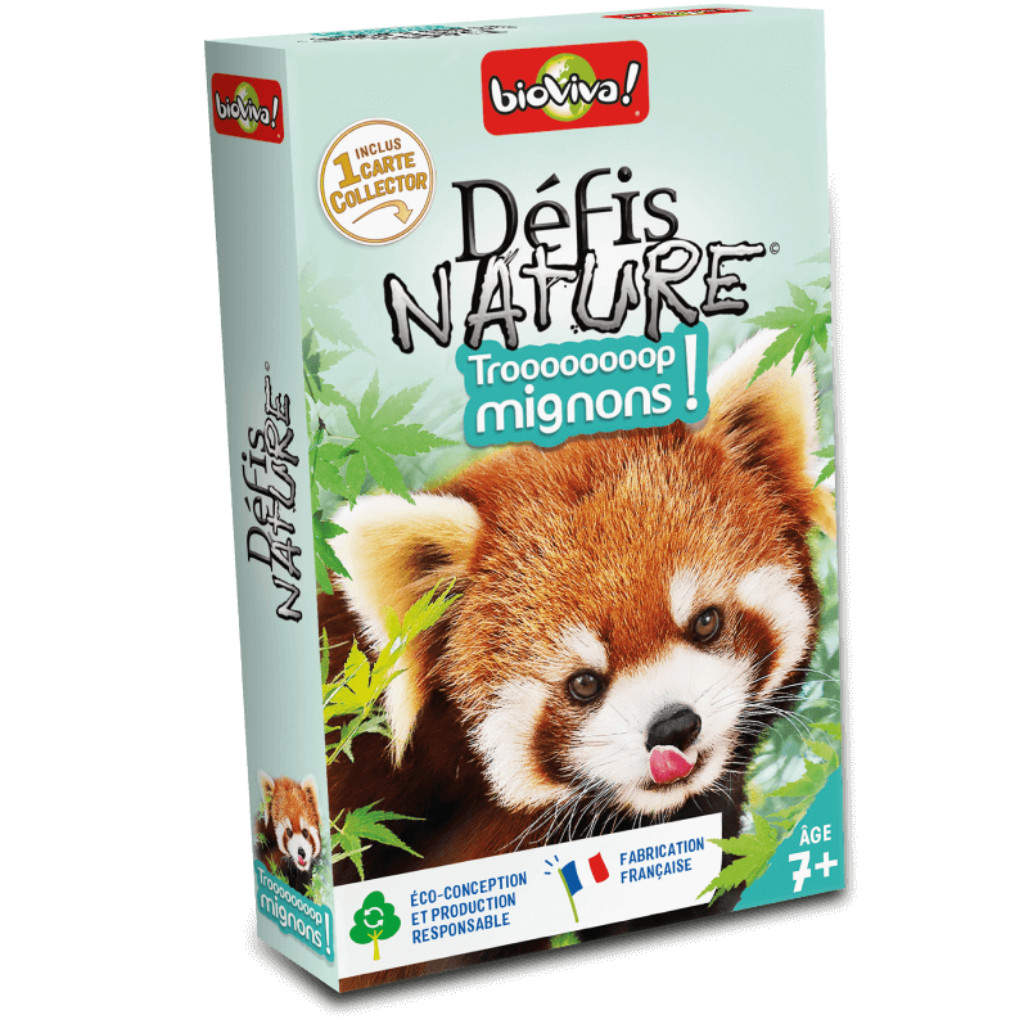 Le principe de Défis Nature - Trop mignons ! est simple : lors d’un tour de jeu, les enfants de 7 ans et + parient sur l’un des points forts de leur animal. Le joueur qui possède la plus forte caractéristique remporte les cartes des autres joueurs. Le premier à collecter toutes les cartes du jeu gagne la partie.