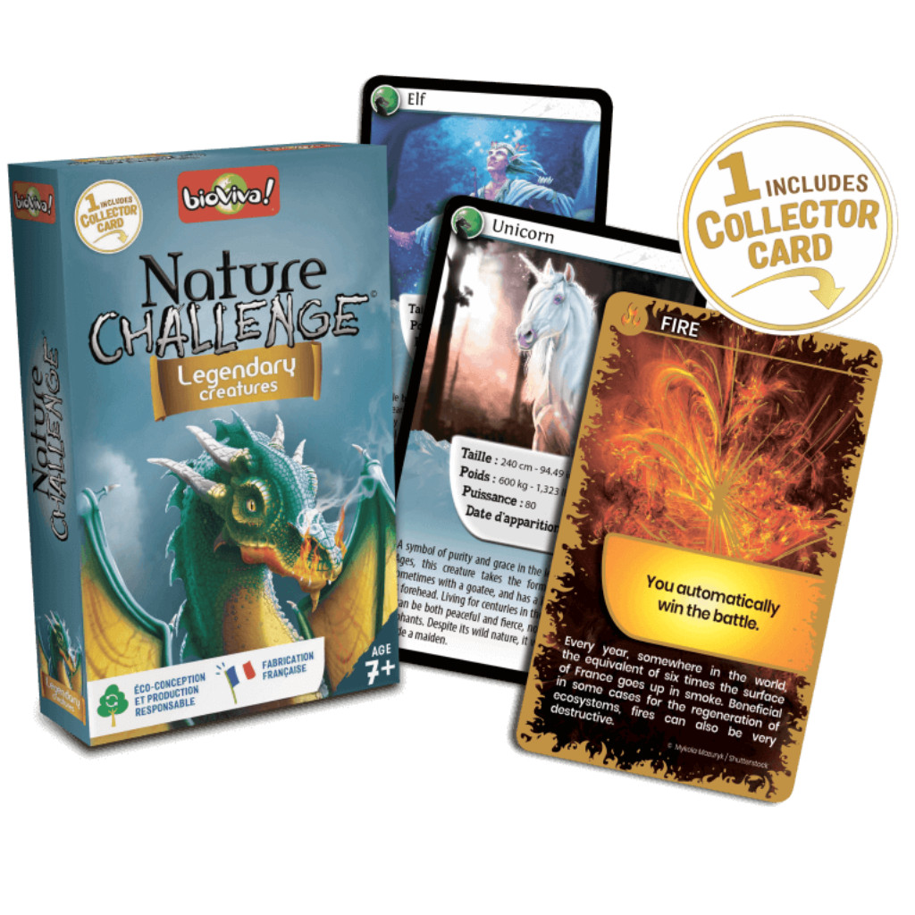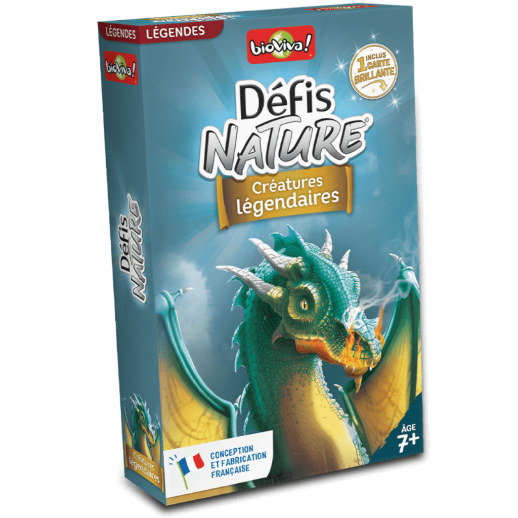 Le principe de Défis Nature - Créatures légendaires est simple : les enfants de 7 ans et + parient sur les points forts des créatures. Le joueur qui possède la plus forte caractéristique remporte les cartes de ses adversaires. Le premier à collecter toutes les cartes du jeu gagne la partie.