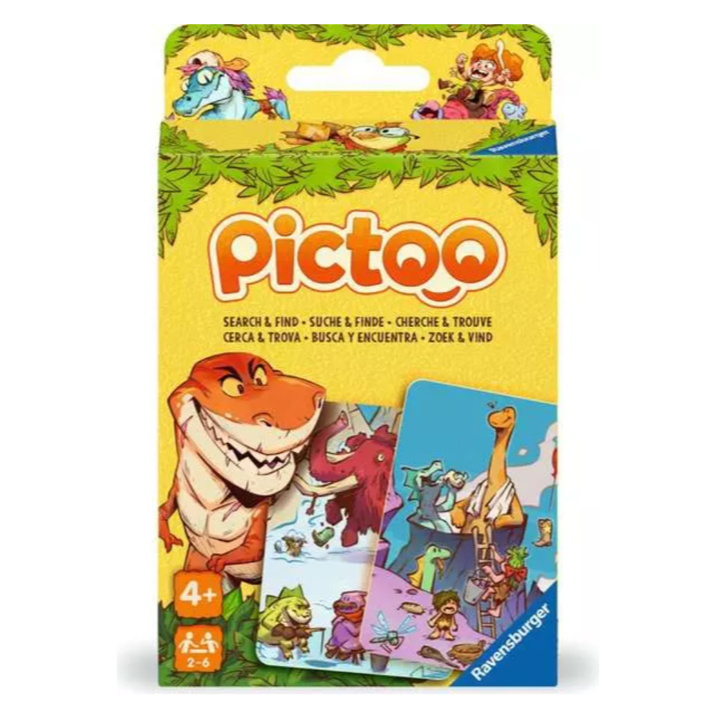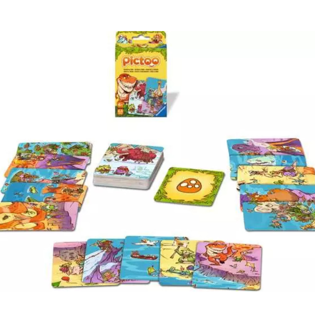 Retournez au temps des Dinosaures avec Pictoo ! Trouvez l'élément recherché sur vos cartes pour décrocher la victoire.
