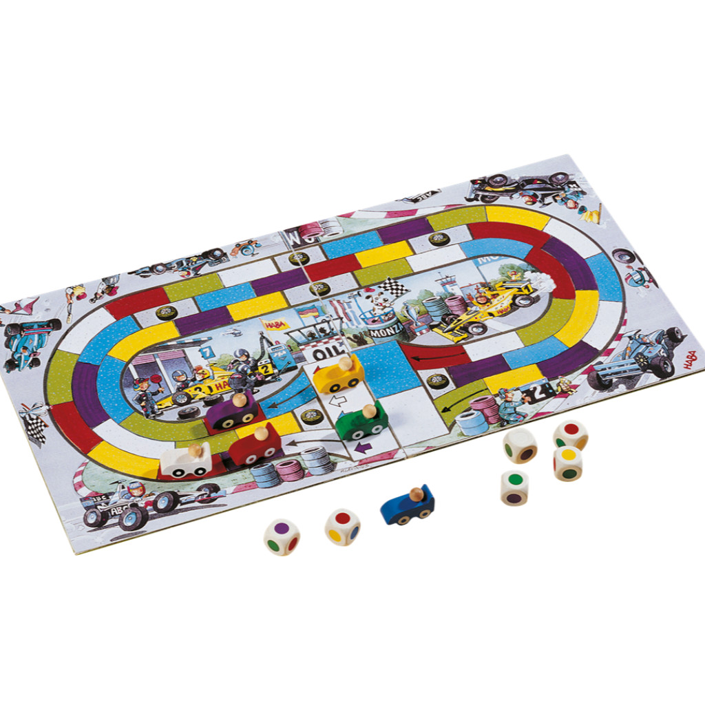 Prenez votre bolide et lancez les six dés aux faces colorées. Choisissez ensuite dans quel ordre les utiliser en fonction de la couleur des cases situées devant votre véhicule sur le circuit. Foncez d’autant de cases que possible pour remporter la course. Changez de voie et évitez les cases obstacles, et vous foncerez vers la victoire !