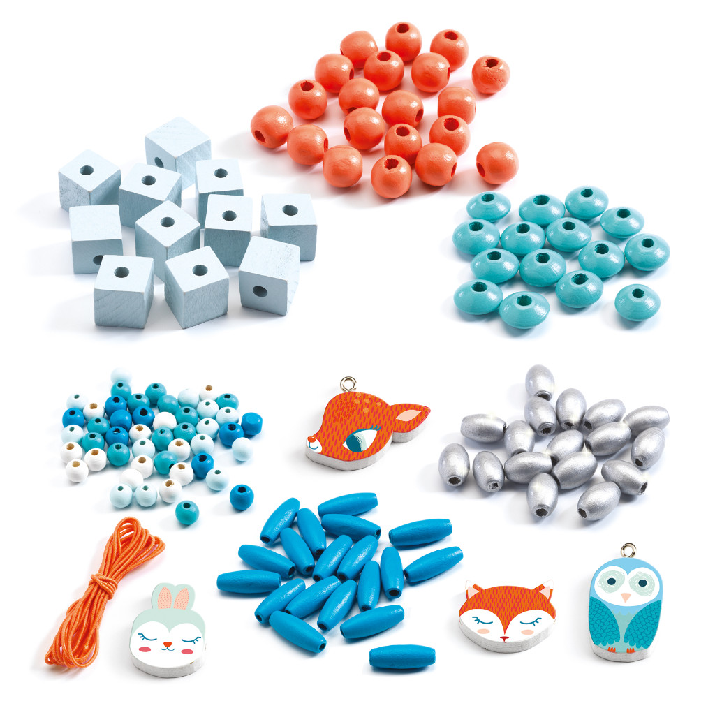 Les perles en bois « Petits animaux » est un coffret contenant plus de 450 perles pour créer de jolis bijoux. Un assortiment de couleurs et de formes bien pensé pour un résultat toujours harmonieux. L’enfant enfile sur les fils les perles pour réaliser de jolis colliers ou bracelets en toute liberté.