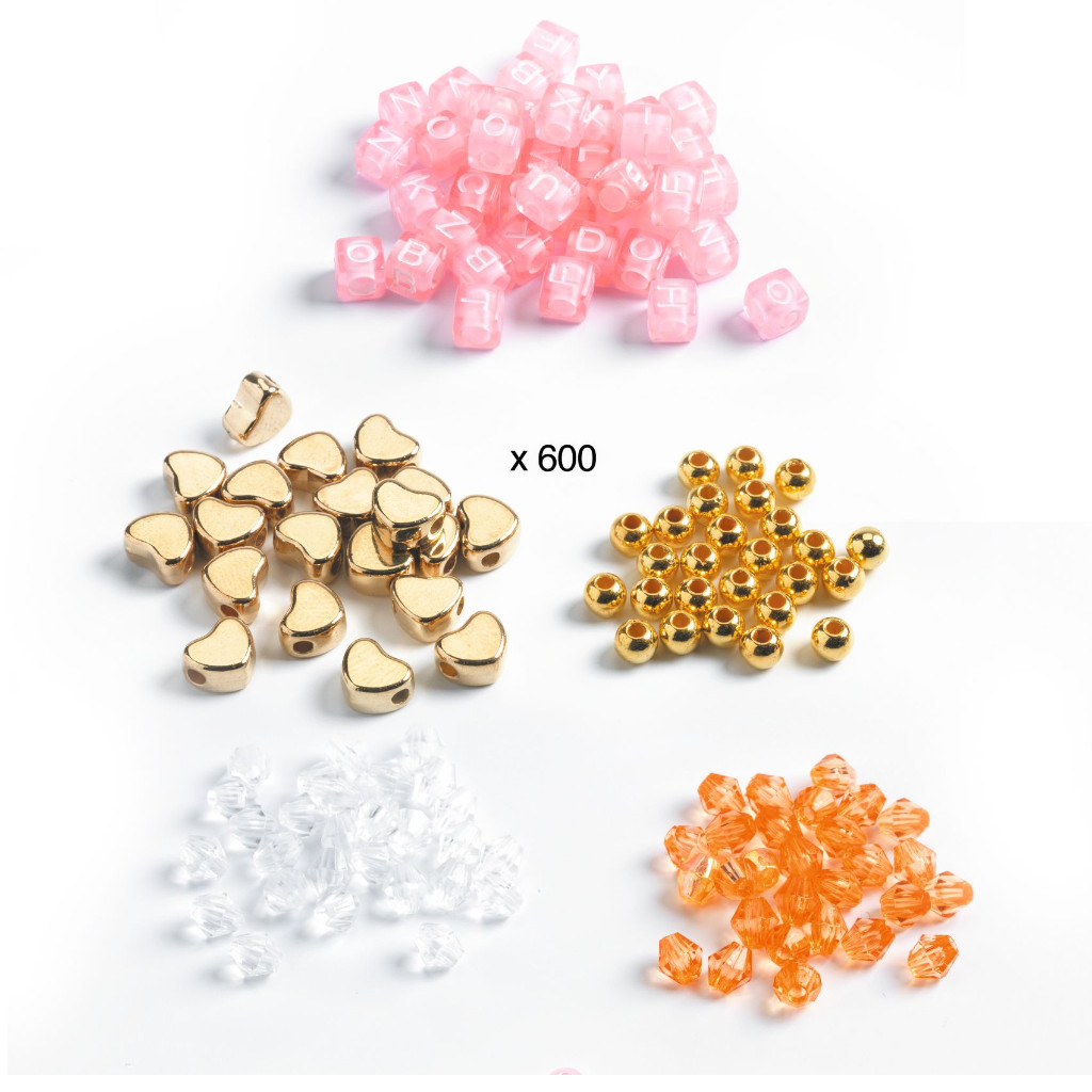 Un coffret très complet contenant 1 000 perles pour créer de jolis bracelets avec des prénoms ou des messages. Un assortiment de perles colorées et dorées, bien pensé pour un résultat toujours harmonieux. L’enfant enfile sur les fils élastiques les perles pour réaliser de jolis bracelets en toute liberté.