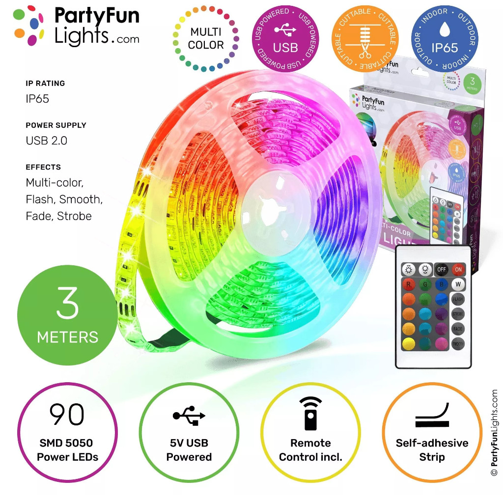 Avec cette bande LED multicolore, vous pouvez tout éclairer. Utilisez-le comme éclairage de fond pour la télévision, donnez à vos murs ou à votre plafond une couleur vive, ou même utilisez-le à l'extérieur pour mettre en valeur votre jardin. Cette bande LED est étanche (IP65), peut être coupée à la longueur souhaitée et est alimentée via USB.
