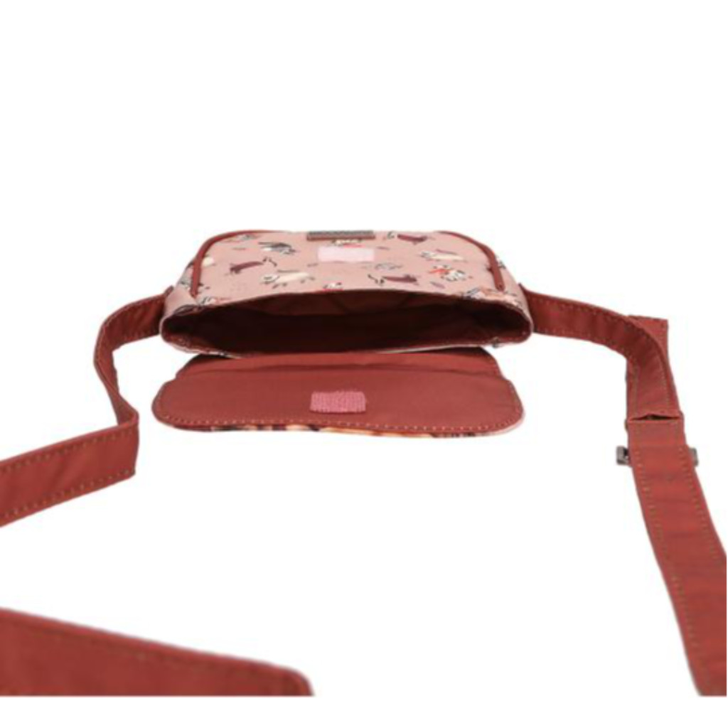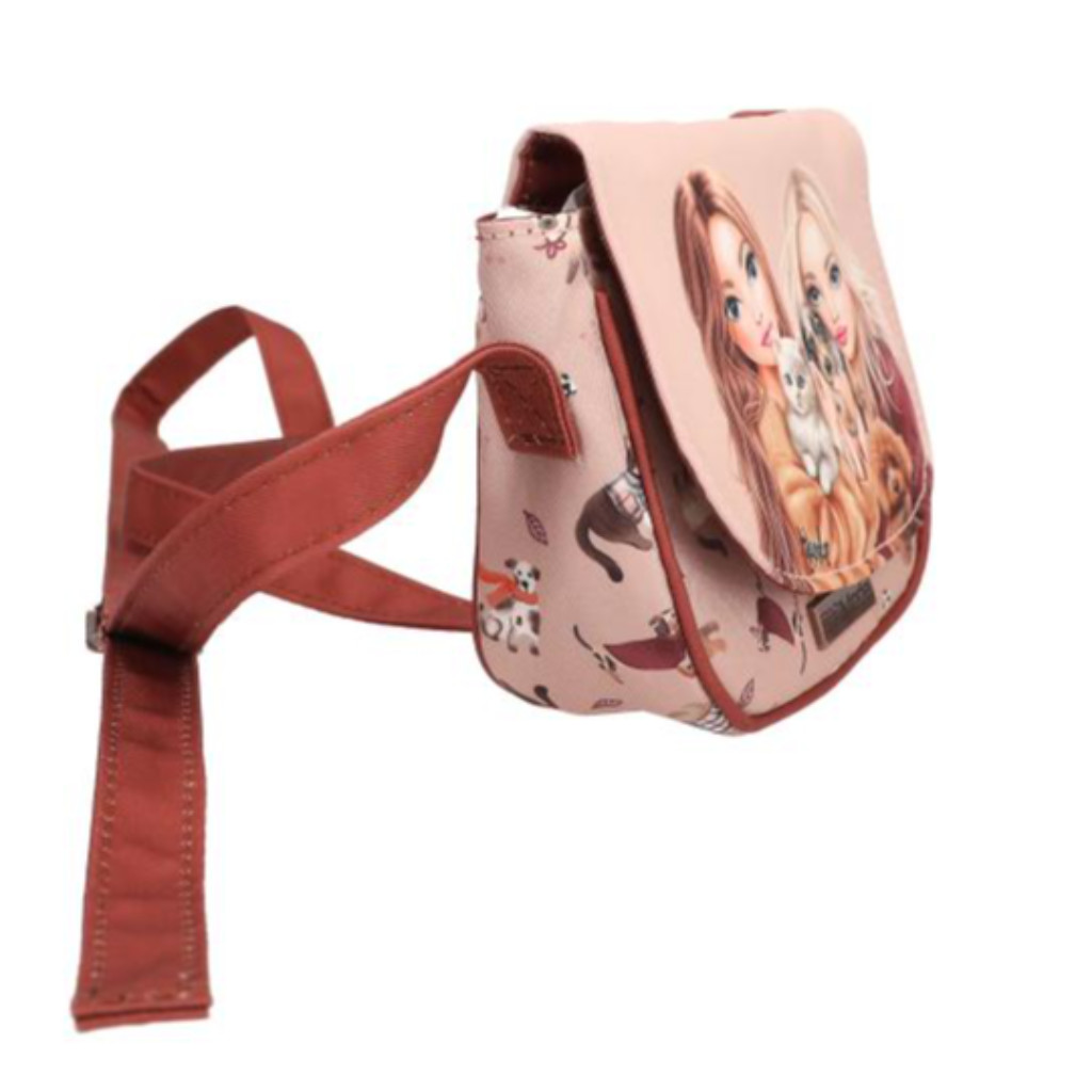 Le clapet de ce petit sac à bandoulière TOPModel rose poudré et cuivré est orné d'un mignon motif mannequin avec chiens et chats. Et, tout autour, l'adorable imprimé all-over composé de petits chiens et chats est tout aussi joli. Le clapet se ferme avec une fermeture velcro, l'intérieur dispose d'un spacieux compartiment principal, la bandoulière est réglable en longueur.