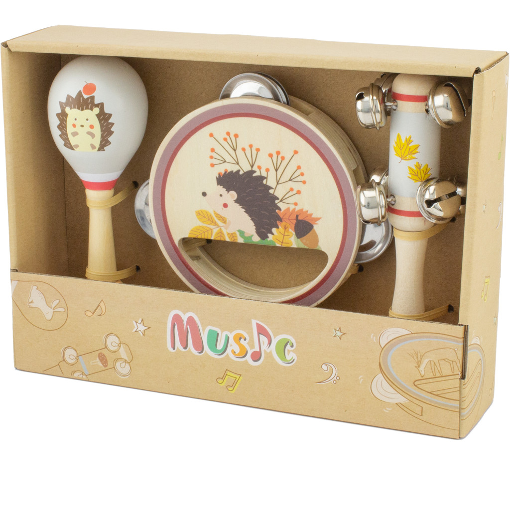 Faites découvrir la musique à vos tout-petits avec notre set musical en bois comprenant trois instruments: une maraca, un tambourin et un hochet avec huit grelots en métal. Le tambourin est entièrement fabriqué en bois avec une poignée ergonomique et trois cymbalettes pour des effets sonores amusants. Convient aux enfants âgés de 18 mois et plus, ce set est parfait pour éveiller leur créativité musicale tout en stimulant leur coordination et leur motricité fine.