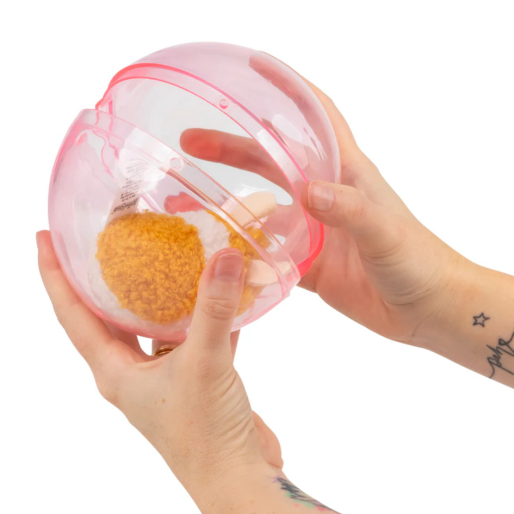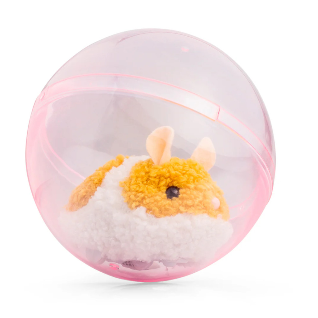 Un hamster poilu grandeur nature qui court sans fin dans sa balle en plastique. Lancez-le et il grimpera sur le bord de la balle, la faisant rouler vers l'avant. Un mécanisme pivotant astucieux situé sous le hamster lui permet de changer de direction de temps en temps, conférant à ce rongeur électronique des mouvements très réalistes.