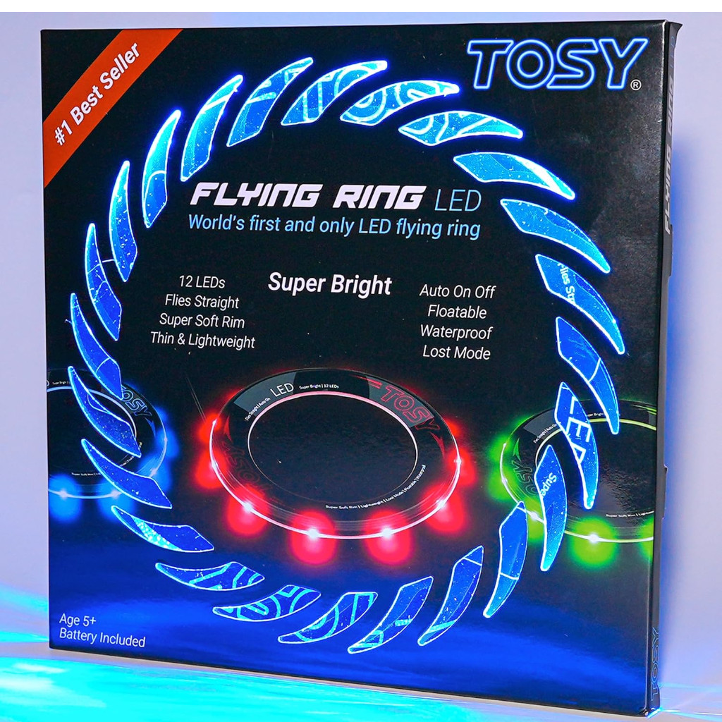 Vole droit et s'allume automatiquement - Léger et bien équilibré, notre anneau volant TOSY est facile à lancer, vole droit et s'élève jusqu'à 100 pieds. Lorsque vous le lancez, les lumières s'allument et s'éteignent automatiquement pour économiser la batterie. La phosphorescence et le bord phosphorescent aident à trouver l'anneau plus facilement.