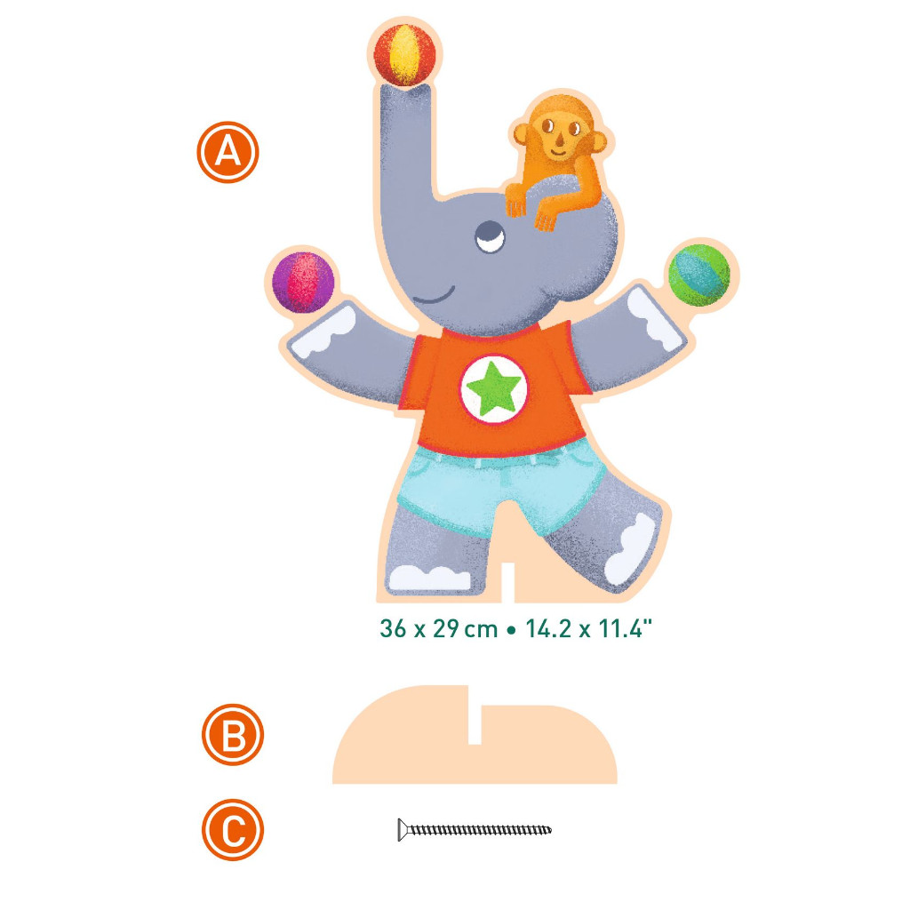 Oola Hoop est un jeu de lancer d'anneaux : qui marquera le plus de points en visant l'éléphant ? Le nombre de points des anneaux dépend de leur taille, mais attention, plus les anneaux sont petits, et plus ils sont difficiles à placer... Variante de jeu : plus les joueurs définissent une zone de lancer éloignée, et plus la difficulté s’accroît. Un grand classique des jeux d'adresse pour enfants !