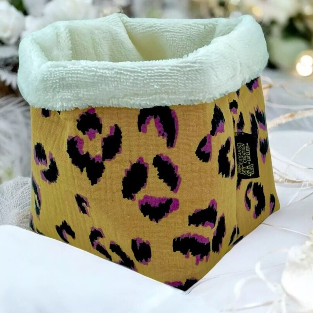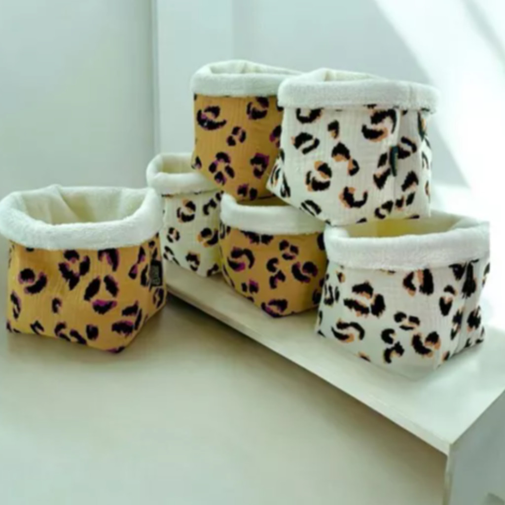 Une grande corbeille avec un imprimé léopard dans le ton camel, c'est un article indispensable dans n'importe quelle pièce de la maison. Cet article n'est pas que décoratif dans une salle bains ou dans la pièce de votre choix, c'est possible grâce à nos grandes corbeilles dans la collection "Savane".