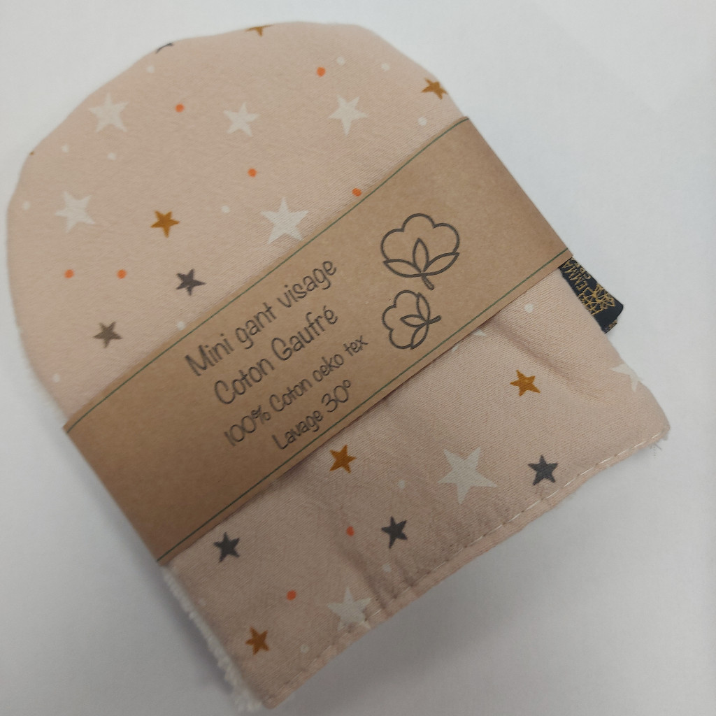 Mini gant démaquillant 100 coton imprimé rose étoiles